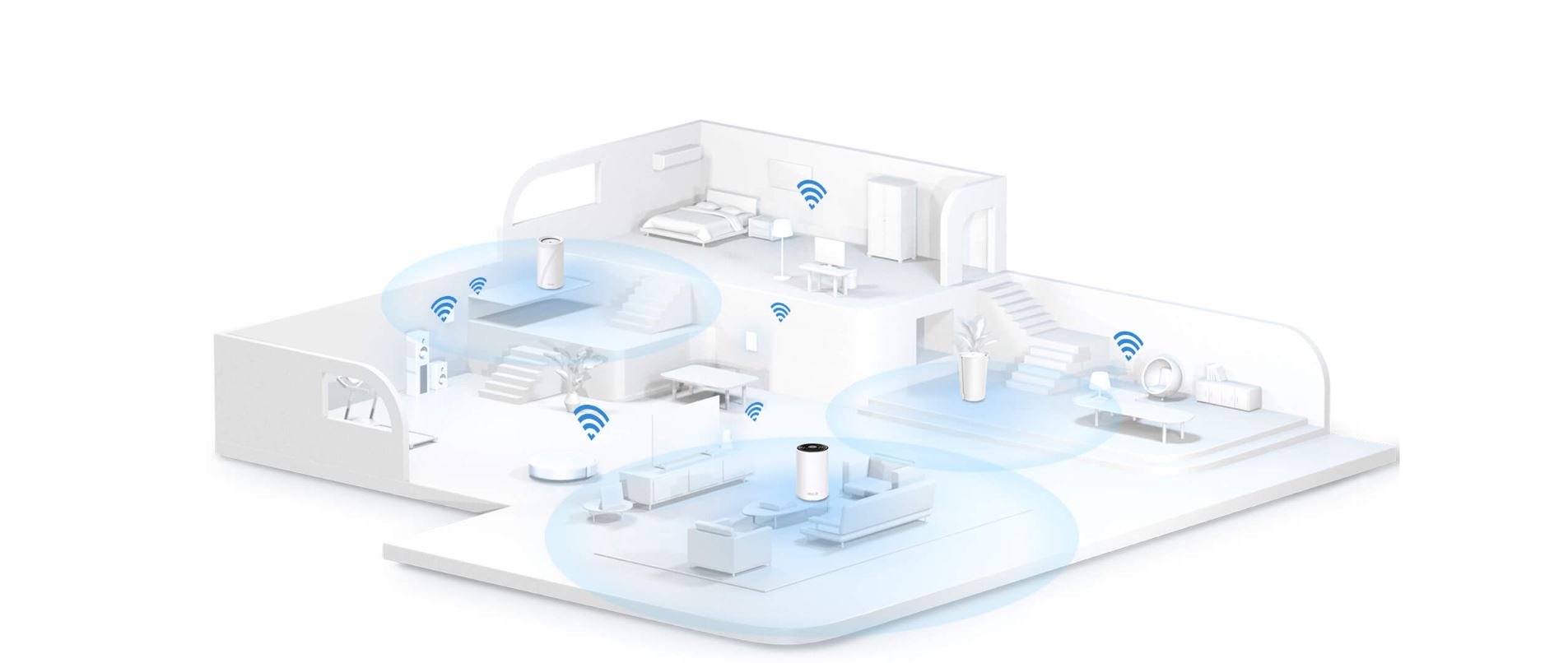 *Zbavte se míst se slabým signálem pomocí jediné Wi-Fi sítě, která pokryje každý kout vaší domácnosti funkcí bezproblémového roamingu, adaptivního směrování a automatického odstranění problémů.