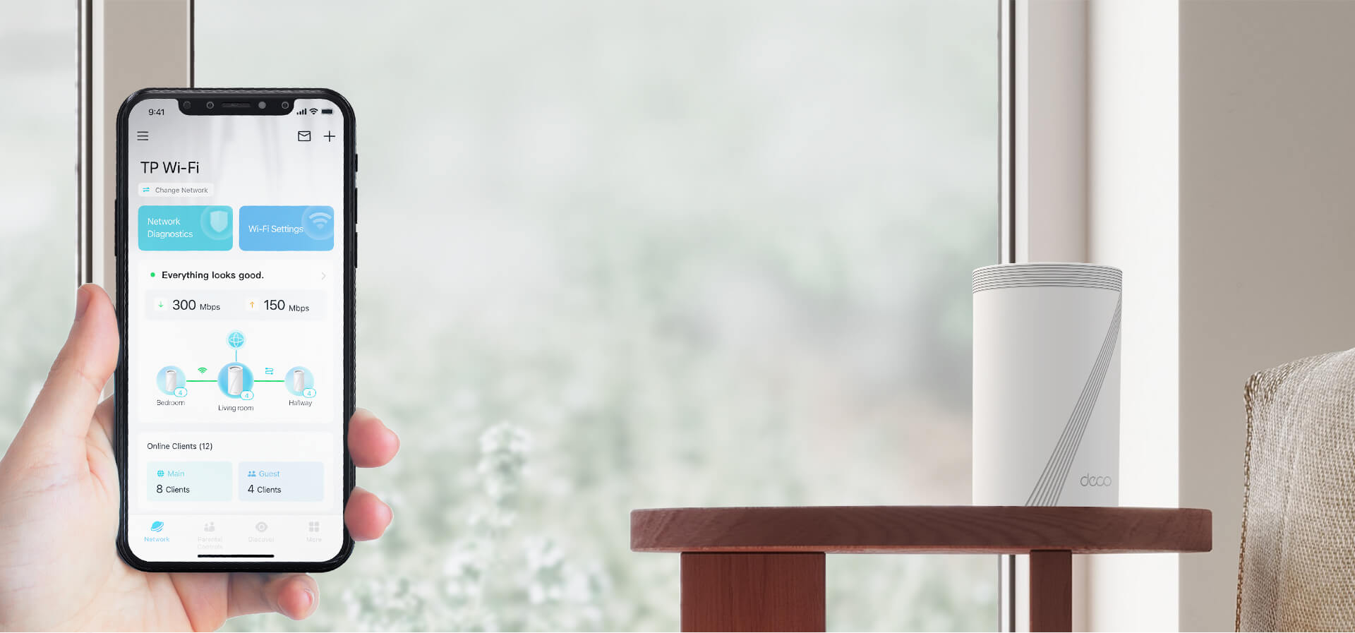 V aplikaci Deco můžete spravovat svou Wi-Fi doma i na cestách. Zobrazte si všechna připojená zařízení, určete priority svých zařízení a nastavte síť pro hosty.
