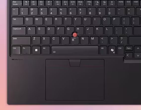 Klávesnice ThinkPad se pyšní ikonickým TrackPointem pro navigaci a také otevírá rychlé menu nastavení po dvojitém klepnutí. Hmatové značení zlepšuje přístupnost kláves Enter, Fn, Insert, portu napájení a dalších. A k dispozici je numerická klávesnice pro psaní čísel.