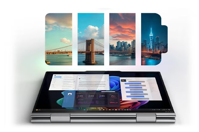 Funkce Smart Share okamžitě propojí váš chytrý telefon s notebookem prostřednictvím virtuálního snímače s umělou inteligencí. Stačí klepnout na zařízení se systémem Android™ nebo iOS a přetáhnout je na notebook. Upravujte fotografie a snadno je sdílejte. Navíc získejte přístup k textovým zprávám a posílejte je z počítače.