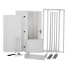Vlastní systém pantů umožňuje otvírání dveří pod úhlem téměř 180°. Dveře lze snadno demontovat a přestavět na otevírání na opačnou stranu.