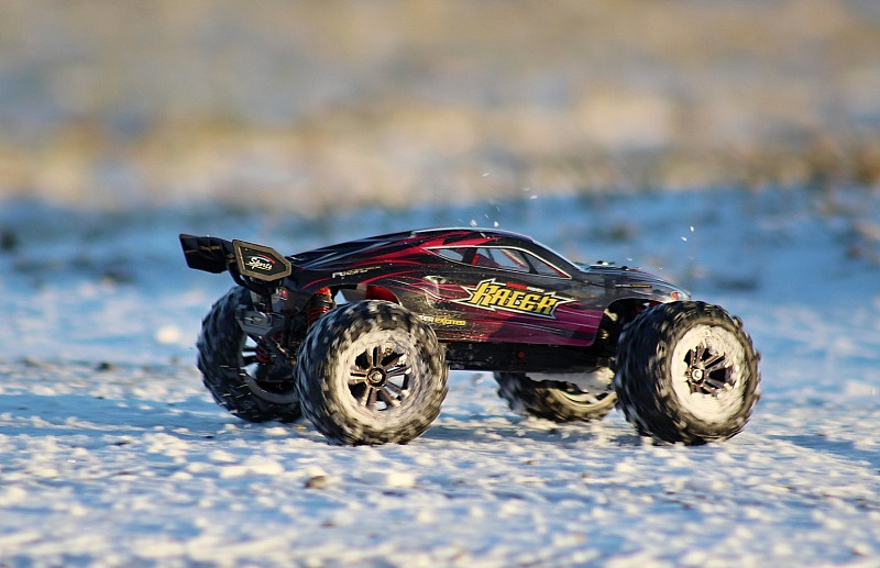 Truggy Racer 4WD 1:16 2.4GHz RTR - červenýRC model v měřítku 1:16 je unikátní výkonným stejnosměrným motorem s pohonem 4WD a stylovým LED osvětlením. Rychlost činí až 36 km/h. Kaluže nebo déšť nejsou překážkou, model je vodotěsný.Závodní terénní auto je vybaveno velkými pneumatikami, které mají vysokou přilnavost i při maximální rychlosti, zadní kola jsou odpružena. S modelem si užijete mnoho zábavy doma i vevnitř. Racing truggy je plně funkčně ovladatelný do všech směrů (vpřed, vzad, vlevo, vpravo) a dokáže se i točit na místě. Model má pistolové a plně proporcionální ovládání, které má dva kanály. Můžete tedy plynule zpomalovat či zrychlovat. Volantový vysílač pracuje na frekvenci 2,4 Ghz a dosahuje do vzdálenosti 80 metrů.Auto je vyrobeno z kvalitního ABS plastu a části jsou z kovu (kovová kuličková ložiska, kovová převodová hřídel).Perfektní výkon je zaručen stejnosměrným elektro motorem. Akumulátor Li-Ion 7,4V 1500 mAh s konektorem T-Dean funguje na jedno nabití cca 20 minut dle terénu a zátěži. Nabíjení je možné prostřednictvím přiložené USB nabíječky (cca 60 min.). Lze dokoupit i akumulátory s kapacitou 1600 mAh nebo s vyšší 2500 mAh.Do vysílač je zapotřebí dokoupit 3x AA baterie, které nejsou součástí balení.Auto je vhodné pro děti od 14 let.Neváhejte ani chvilku a objednejte si toto výkonné auto se stylovou karoserií.K dispozici je i v modrém provedení.Pozor, při objednávání náhradního akumulátoru se přesvěčte jakým konektorem je vybaven model pro který má být akumulátor určen. Pro starší model s černým konektorem lze použít akumulátor 7,4 V s kapacitou 500 mAh nebo silnější s kapacitou 1000 mAh. Obsah balení: Model Vysílač Baterie Nabíječka Technické parametry: Měřítko: 1/16 Konstrukce auta: truggy Délka auta: 29 Šířka auta: 23 Výška auta: 13 Hmotnost auta: 880 Auto je vhodné na ven: ano Barva: Růžová Auto je vhodné do interiéru: ne Typ motorů v autě: stejnosměrné Rychlost auta: 36 Kapacita akumulátoru v autě: 1500 Napětí akumulátoru v autě: 7.4 Typ akumulátoru do auta: Li-Po Typ nabíječky: USB Výměnný akumulátor v autě: ano Napájení ovladače k autu: 3xAA Doba jízdy auta: 20 Dosah ovládání auta: 80 Frekvence ovládání RC auta: 2,4Ghz Konstrukce ovladače k autu: Pistolový Plynulá regulace rychlosti: ano Plynulá řízení zatáčení: ano Voděodolnost (stříkající voda): ano Vodotěsnost (potopení): ne Naměřená rychlost: 27