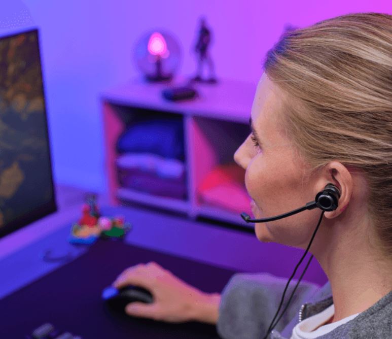 S duálními mikrofony můžete plynule přepínat mezi odnímatelným mikrofonem na rameni pro hraní her a mikrofonem na kabelu pro hovory. Ovládejte zvuk pomocí integrovaného vypínače ztlumení, multifunkčního tlačítka pro volání a ovládání hlasitosti, abyste měli vše pod kontrolou.