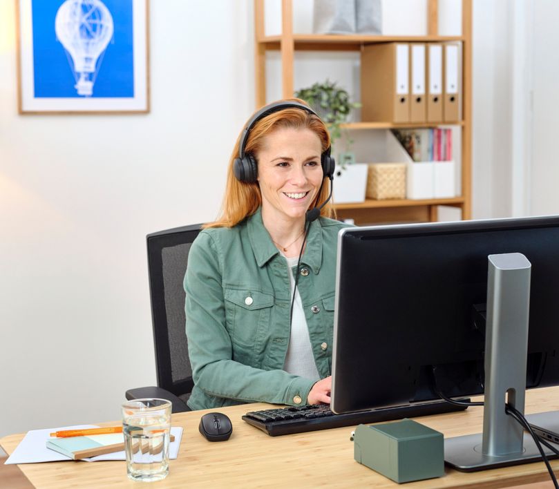Ponořte se do schůzek s naprostým pohodlím díky náhlavní soupravě HS-150. Díky ovladači hlasitosti na uchu a otočnému mikrofonu s možností ztlumení máte k dispozici všechny ovládací prvky, které potřebujete, abyste ze svých online schůzek a videohovorů vytěžili maximum.