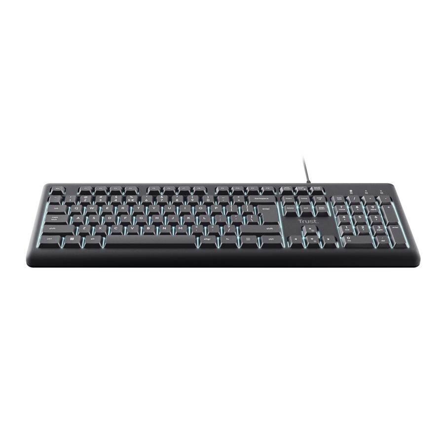 Pracujte nepřetržitě s klávesnicí Trust Primo Illuminated. Tato tichá klávesnice je vybavena podsvícenými klávesami LED pro snadné čtení bez ohledu na denní dobu. Umožňuje úpravu jasu pomocí kláves Fn podle svého prostředí. Klávesnice je vyrobena ze 70 % recyklovaných plastů pro vyšší produktivitu. Konstrukce Primo Illuminated je odolná proti polití, chrání před nehodami způsobenými rozlitím tekutin. Má nastavitelné nožičky pro nastavené ideálního úhlu pro psaní. Žádné starosti, maximální produktivita. Jednoduše připojte klávesnici Trust pomocí 180cm kabelu USB-C nebo dodaného převodníku USB-C-A a jste připraveni. Žádné ovladače, žádná zpoždění, žádné bolesti hlavy. Pouze okamžitá kompatibilita s vaším oblíbeným zařízením. Technické parametry *Typ připojení: kabelové *USB verze: 2.0 *Délka kabelu: 180cm *Typ konektoru: USB-C (v balení převodník na USB-A) *Klávesová technologie: membrána *Layout: CZ/SK *Rozměry: 22 x 436 x 184 mm *Hmotnost: 526 g