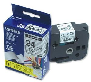Originální kazeta s páskou Brother TZe-151 - černý tisk na průsvitné, šířka 24 mm