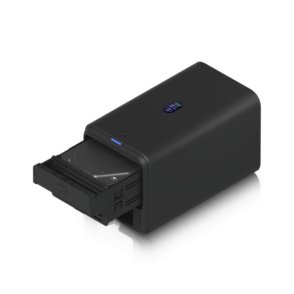 * UniFi Network Attached Storage se dvěma 3.5" HDD pozicemi nabízí výkonné a přitom prostorově úsporné řešení pro ukládání dat.