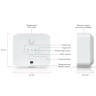 Popis produktu Bezdrátový SuperLink senzor pro detekci úniků vody a měření teploty, vlhkosti a intenzity okolního světla. Pro detekci vody je vybaven vlastními senzory nebo je možné připojit sondu prostřednictvím 3,5mm AUX jacku. Klíčové vlastnosti • Připojení pomocí bezdrátového proprietárního protokolu SuperLink • 3.5 mm AUX jack pro připojení sondy pro kontrolu úniku vody • Napájení pomocí baterie CR123A • Výdrž baterie až 6 let • Možnost montáže pomocí lepicí pásky, magnetu nebo šroubů Obsah balení • Zařízení • CR123A baterie • Montážní příslušenství • Montážní deska • Krytky Technické parametry Bezdrátové vlastnosti Bezdrátové frekvence:SuperLink Napájení Typ napájení:Baterie Fyzické charakteristiky Stupeň krytí:IPX5 Materiál:Polykarbonát LED indikace:Ano Tlačítka:Reset Provozní teplota [°C]:-20 až 40 Šířka [mm]:53 Výška [mm]:49 Hloubka [mm]:24.
