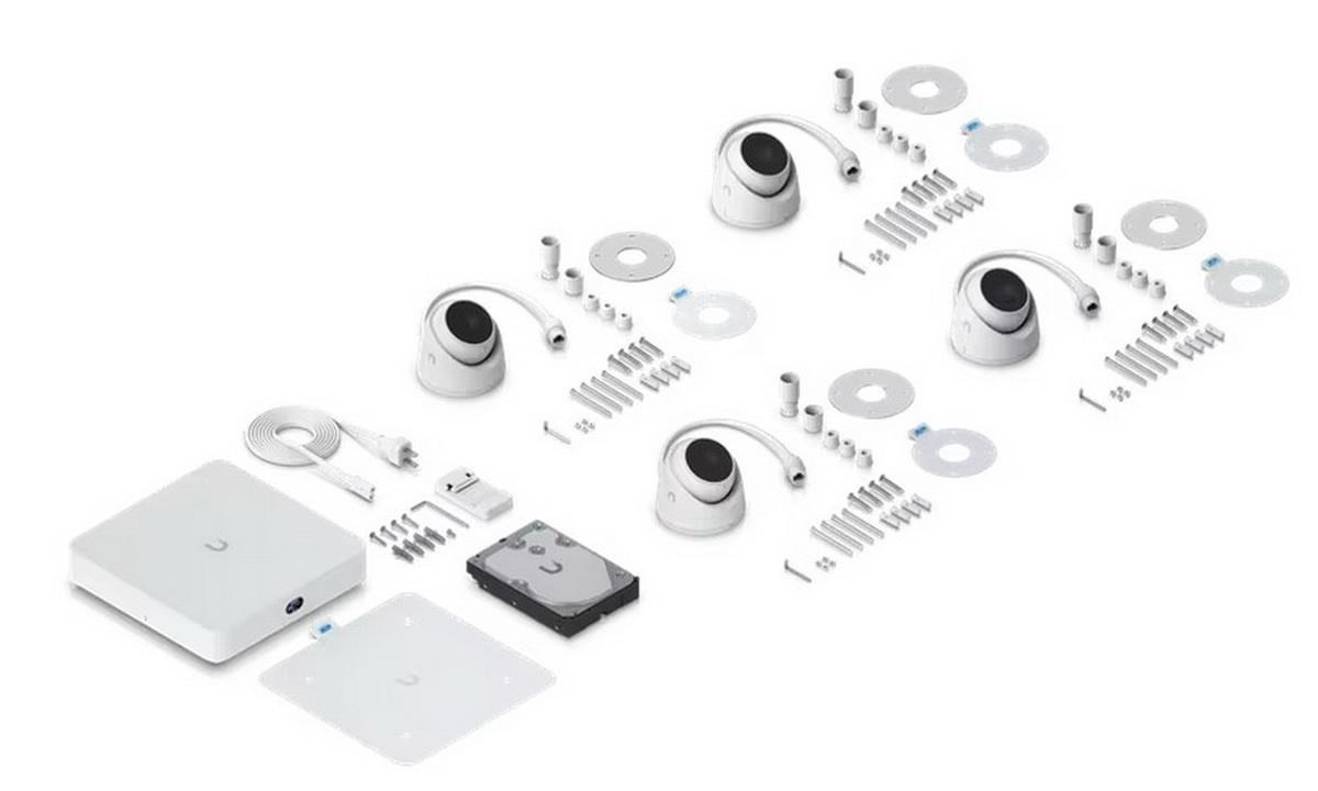 Popis produktu UniFi Protect UNVR-Instant-Kit je prodáván jako kit záznamového zařízení včetně 1TB 3,5'' HDD a 4 ks kamer UVC G5 Turret Ultra. K NVR je možné připojit až 15 kamer v HD rozlišení, 8 kamer s 2K rozlišením nebo 6 kamer ve 4K. NVR je vybaveno gigabitovým uplink portem a 6 gigabitovými porty s podporou PoE napájení 802.3af, které slouží pro připojení kamer. Napájení NVR je ze sítě 230V AC a jeho maximální spotřeba bez připojeného příslušenství a kamer je 9 W. Kamery UVC G5 Turret Ultra s rozlišením 4MP (2688 x 1512) jsou vybaveny fixním objektivem, který má pozorovací úhel 102,4° horizontálně a 54,9° vertikálně. Kamery disponují mikrofonem a 10/100Mbps ethernetovým portem, který slouží i k napájení kamery přes POE 802.3af nebo pasivní POE se vstupním napětím 37 - 57 V DC. Pro noční režim kamera využívá IR přísvit s dosahem 30 m. Maximální spotřeba činí pouze 4 W. Klíčové vlastnosti • UNVR-Instant + 1TB 3.5'' HDD + 4 UVC G5 Turret Ultra • Vše v jednom pro snadnou instalaci • Uložení záznamu na 3.5" pevný disk 1 TB (součást balení) • Možnost montáže kamer na zeď, strop (držák součástí balení) Obsah balení • NVR • (4) kamera UVC G5 Turret Ultra • (1) 3,5" HDD s kapacitou 1 TB • Montážní podložka • Montážní příslušenství Technické parametry Kamera Typ objektivu:Fixní Dosah přísvitu [m]:30 Obrazový senzor ["]:1/2.4 Obraz Rozlišení:4MP Max. rozlišení [pixely]:2688 x 1512 Max. rozlišení kamer pro záznam:8MP Konektory a rozhraní Audio:Mikrofon Rychlost LAN:(7) 10/100/1000Mbps HDMI rozhraní:Ano Napájení Napájení přes PoE:802.3af Typ napájení:Ze sítě (230V) Podporované PoE-Out standardy:802.3af Počet PoE Out portů:6 PoE budget [W]:40 Max. spotřeba energie [W]:4 Fyzické charakteristiky Stupeň krytí:IP66 Provedení:Desktop Použití:Venkovní Tlačítka:Reset Provozní teplota [°C]:0 až 40 Hmotnost [g]:1040 Šířka [mm]:47 Výška [mm]:47 Hloubka [mm]:220 Hardware Počet podporovaných IP kamer:15 Počet podporovaných HDD:1 Obecné Kamerová řada:UniFi Protect.
