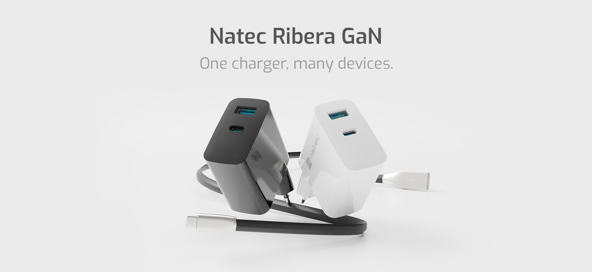 Rychlejšà nabĂjenĂ a nižšà spotĹ™eba energie. Seznamte se s 65W nabĂjeÄŤkou Natec Ribera GaN - vĂceportovou nabĂjeÄŤkou, se kterou mĹŻĹľete doplnit energii 2 zaĹ™ĂzenĂm souÄŤasnÄ› (takĂ© vybranĂ˝m notebookĹŻm, kterĂ© podporujĂ standard PD). Od nynÄ›jška to bude trvat ještÄ› kratšà dobu dĂky technologii rychlĂ©ho nabĂjenĂ a vyššà energetickĂ© účinnosti, která je vĂ˝sledkem pouĹľitĂ nitridu galia (GaN) - novĂ©ho, účinnÄ›jšĂho polovodiÄŤe, coĹľ se pozitivnÄ› projevuje i na velikosti nabĂjeÄŤky. MenšĂ, lehÄŤĂ, účinnÄ›jšĂ. Taková je nabĂjeÄŤka Natec Ribera GaN.