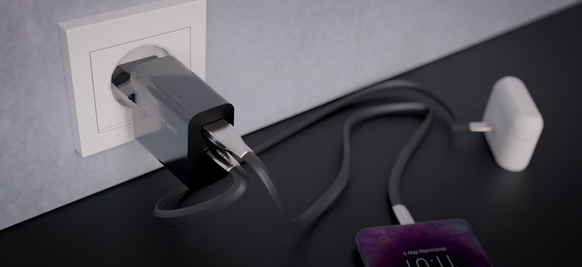 Chcete doplňovat energii ne do 1, ale do 2 zařízení najednou? Se zařízením Natec Ribera GaN to zvládnete snadno. Naši nabíječku jsme vybavili dvěma porty USB (USB typu A a USB-C) s celkovým výkonem 65 W. Navíc díky podpoře technologií rychlého nabíjení (Power Delivery 3.0, Quick Charge 3.0, Samsung AFC, Huawei FCP/SCP) to zvládnete ještě rychleji než dříve, a to není vše. Natec Ribera GaN využívá protokol PPS, zcela nové nabíjecí schéma, které umožňuje nabíjet různá zařízení bez ohledu na značku. Automaticky upravuje parametry nabíjení a přizpůsobuje je připojenému zařízení. Velká úspora času ve srovnání s klasickými řešeními? S Natec Ribera GaN se na to můžete spolehnout.