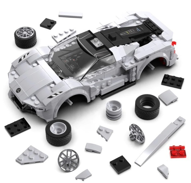 Velký set RC stavebnic - Lotus Evija, RED RACE CAR a BLUE KNIGHT