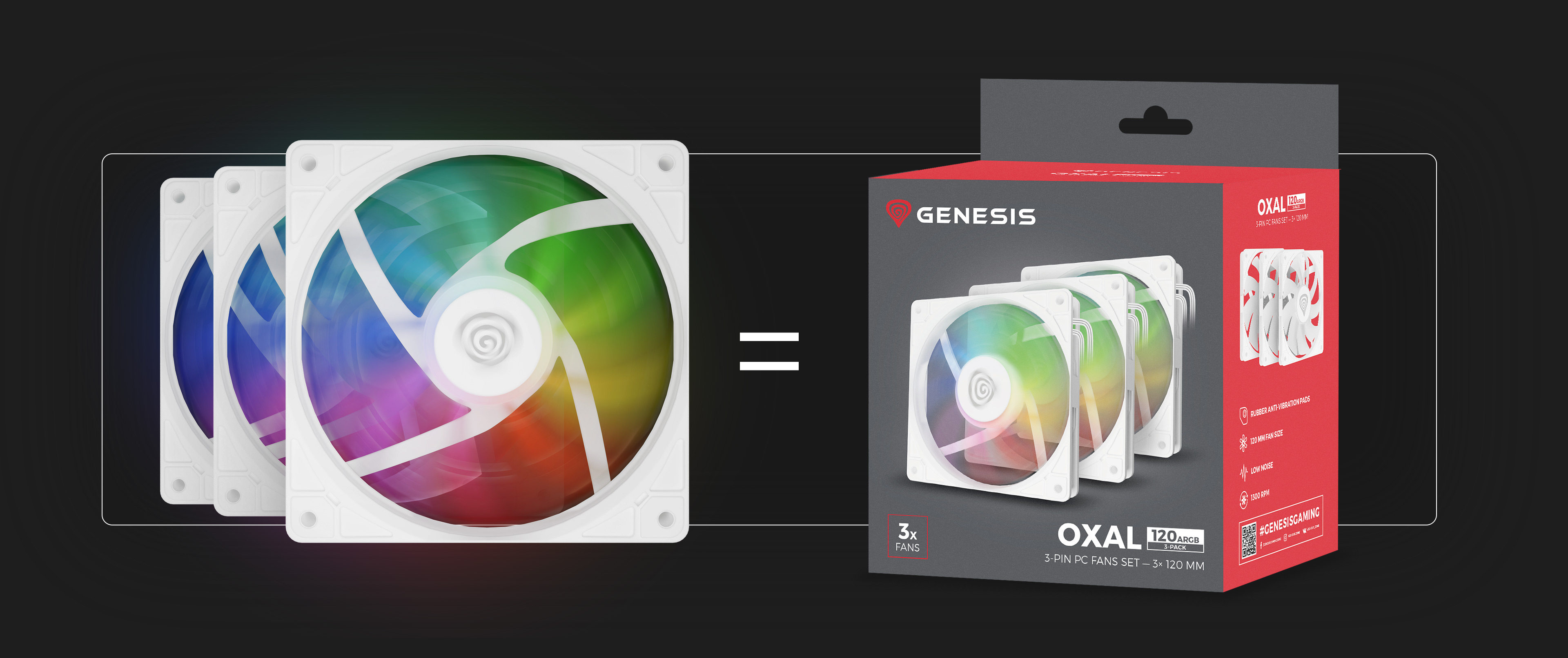 Vybavte svou skříň až 3 dalšími ventilátory GENESIS Oxal 120 ARGB a pocítíte rozdíl. GENESIS Oxal 120 ARGB 3-Pack vám také pomůže využít plný potenciál vaší skříně.