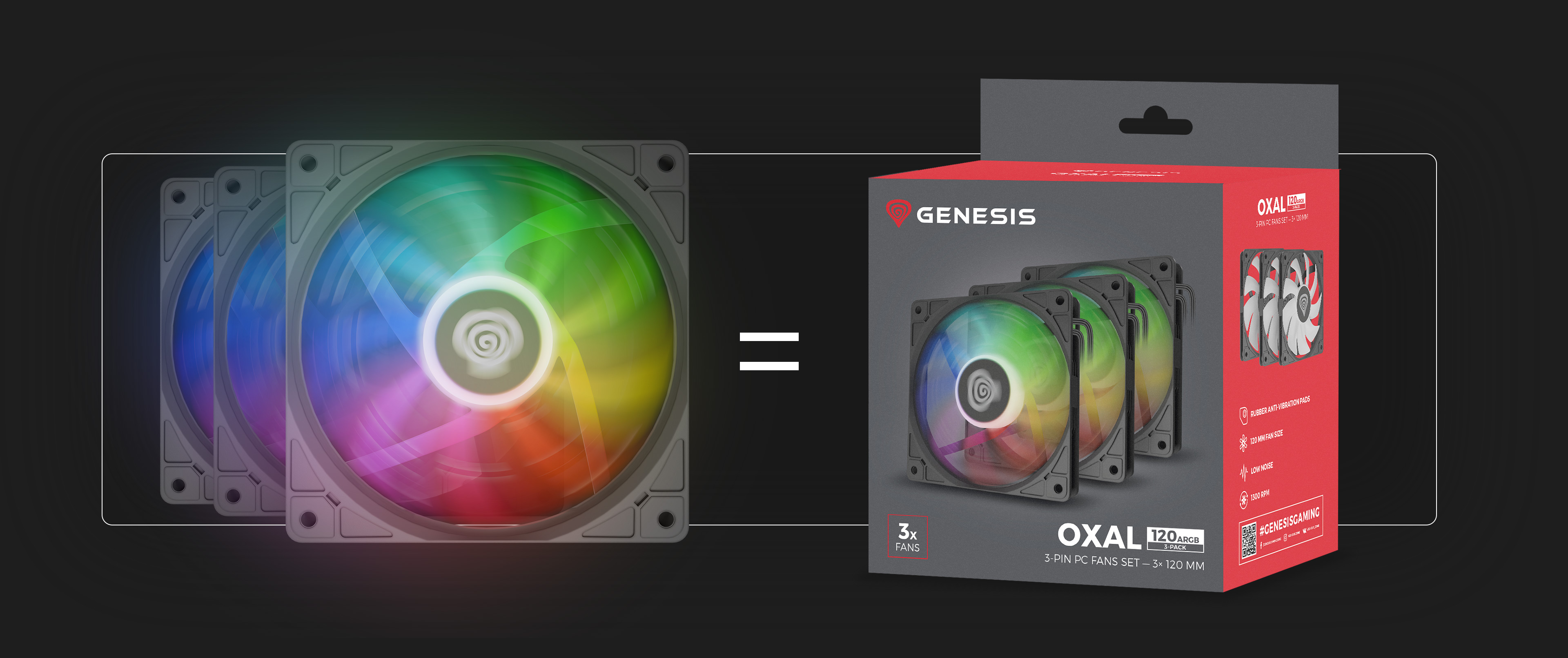 Vybavte svou skříň až 3 dalšími ventilátory GENESIS Oxal 120 ARGB a pocítíte rozdíl. GENESIS Oxal 120 ARGB 3-Pack vám také pomůže využít plný potenciál vaší skříně.