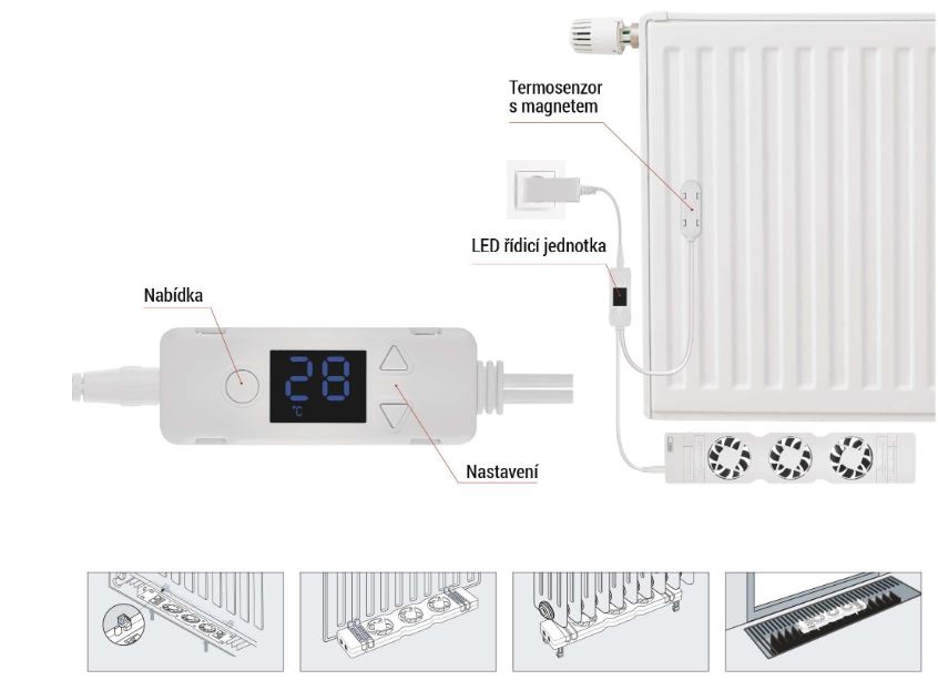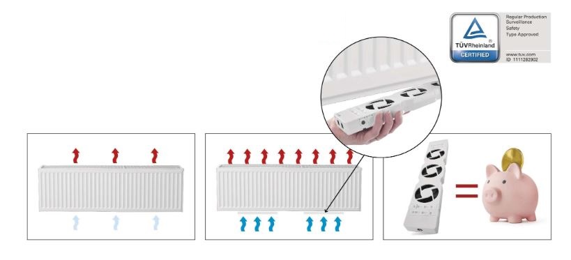Dvakrát rychlejšà a rovnoměrnějšà vytápěnàs úsporným ventilátorem pod radiátor!