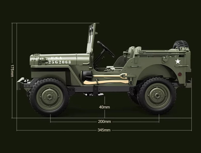 Vojenské RC auto Jeep WILLYS 1/10 šedý