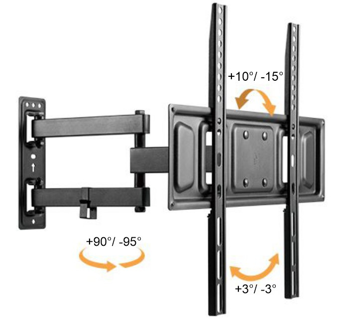 • Volně sklopitelná konstrukce pro jednoduchou změnu náklonu TV v úhlu +10°~-15°