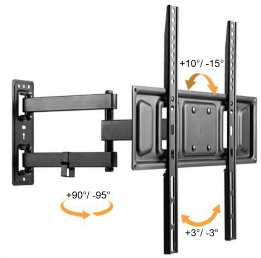 - Volně sklopitelná konstrukce pro jednoduchou změnu náklonu TV v úhlu +10°~-15°