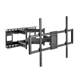 Výsuvný nástěnný držák LPA77-696 je určen pro instalaci TV s plochou obrazovkou s úhlopříčkami od 60“ do 120“. Jeho největší přednostní je robustní výsuvná heavy-duty konstrukce, díky níž unese TV o hmotnosti až 120 kg a zároveň umožňuje nastavit vzdálenost TV od stěny v rozsahu 75 mm až 703 mm, samozřejmostí je pak také velký rozsah polohování. Držák umožňuje snadné naklápění TV v rozsahu +5°~-15°, natočení do stran v rozsahu +60°~-60° a rotaci v rozsahu +5°~-5°, což maximalizuje flexibilitu sledování z libovolného místa v místnosti. Integrovaná svorka na kabely udržuje kabely uspořádané a chráněné.