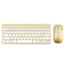 Bezdrátová sada skládající se z klávesnice a myši ve zlaté barvě vám rozhodně usnadní práci. Můžete zapomenout na zamotané kabely. Jak klávesnice, tak myš fungují prostřednictvím Bluetooth, díky čemuž se nemusíte starat o pohodlí.