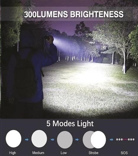 Funkce svícení: 3 úrovně světla (silné, střední, slabé), blikání, SOS.