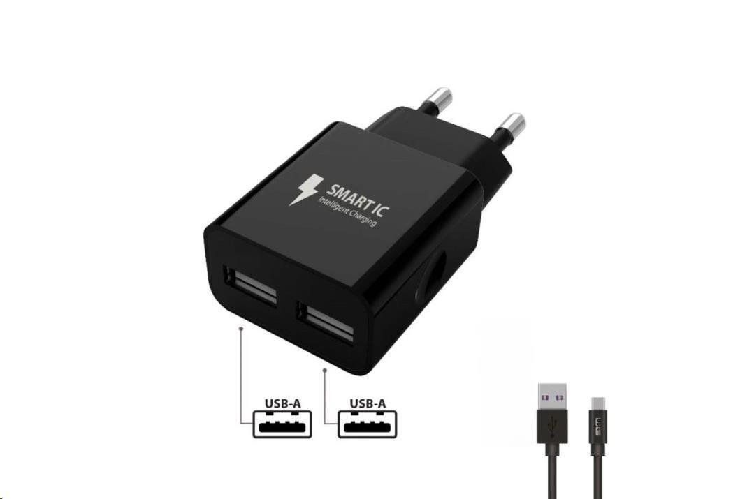 WG - Síťová nabíječka 2x USB-A 2,4A , Smart IC + kabel USB-A na Type-C, black