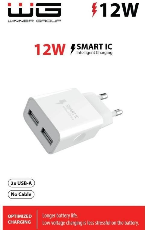 WG - Síťová nabíječka 2x USB-A 2,4A , white