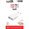 WG - Síťová nabíječka GaN 2x USB, 1x USB-C 30W + 1x USB-A 18W, white, Ultra Slim