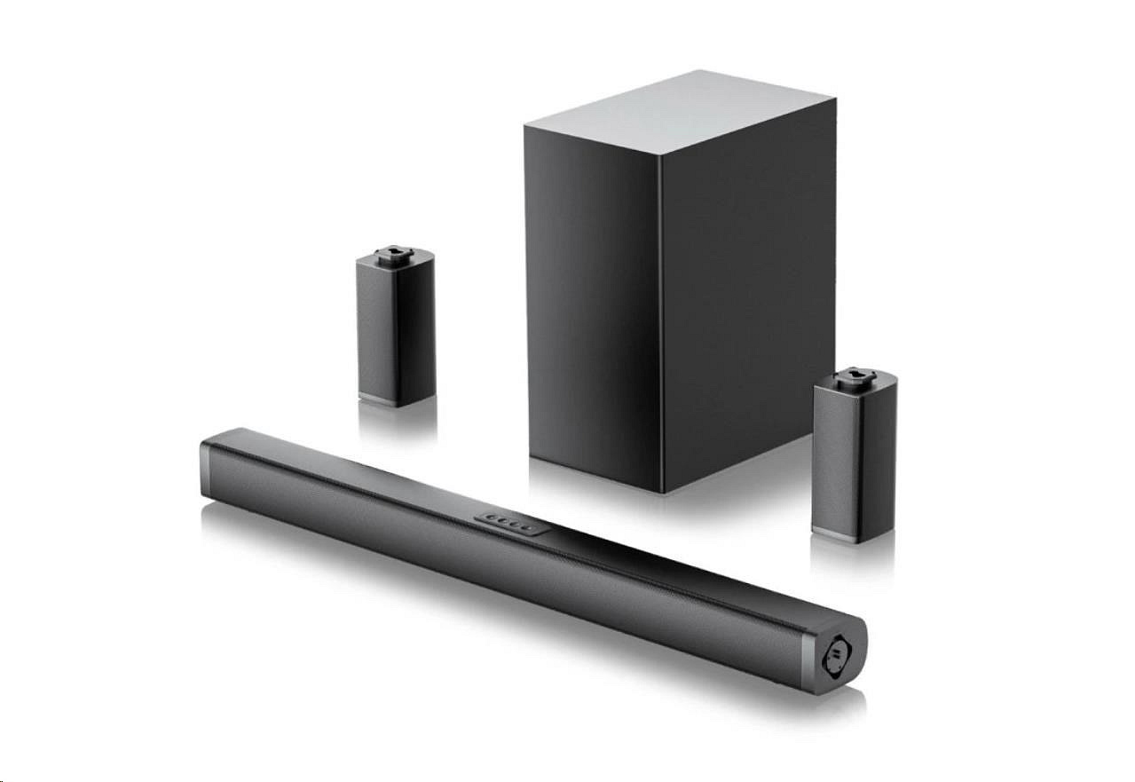 Výkonný prostorový zvuk – kombinace soundbaru, subwooferu a dvou prostorových reproduktorů vytvoří dokonalou 360° zvukovou kulisu.