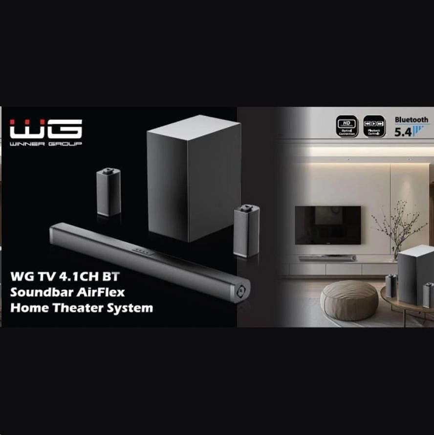 WG TV 4.1CH BT Soundbar AirFlex Home Theater System/4 main audio channels + 1 subwoofer