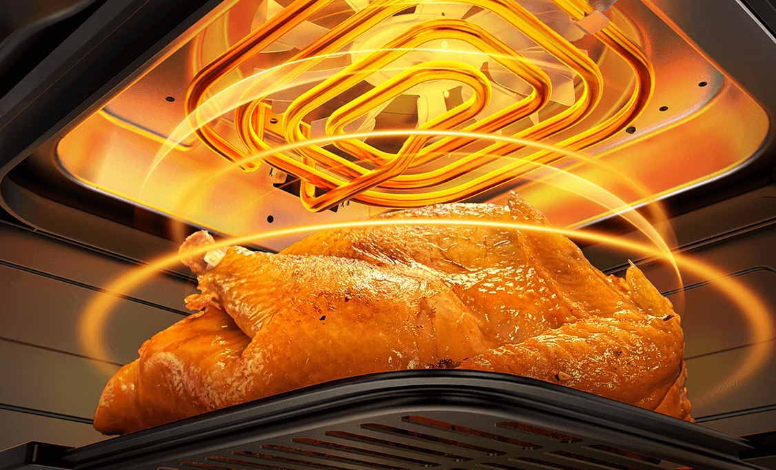 360° proudění vzduchu cirkuluje horký vzduch a ohřívá jídlo rychle a rovnoměrně, čímž vzniká křupavá kůrka a šťavnatý vnitřek. Vysoký 2 700W výkon zajišťuje až o 71 % vyšší efektivitu vaření v porovnání s klasickou troubou.