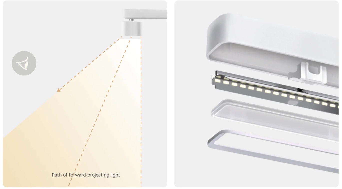 Modernizovaný design má 60cm zavěšenou horizontální hlavu lampy, která snadno pojme notebook pro práci nebo studium a šetří cenné místo na stole.