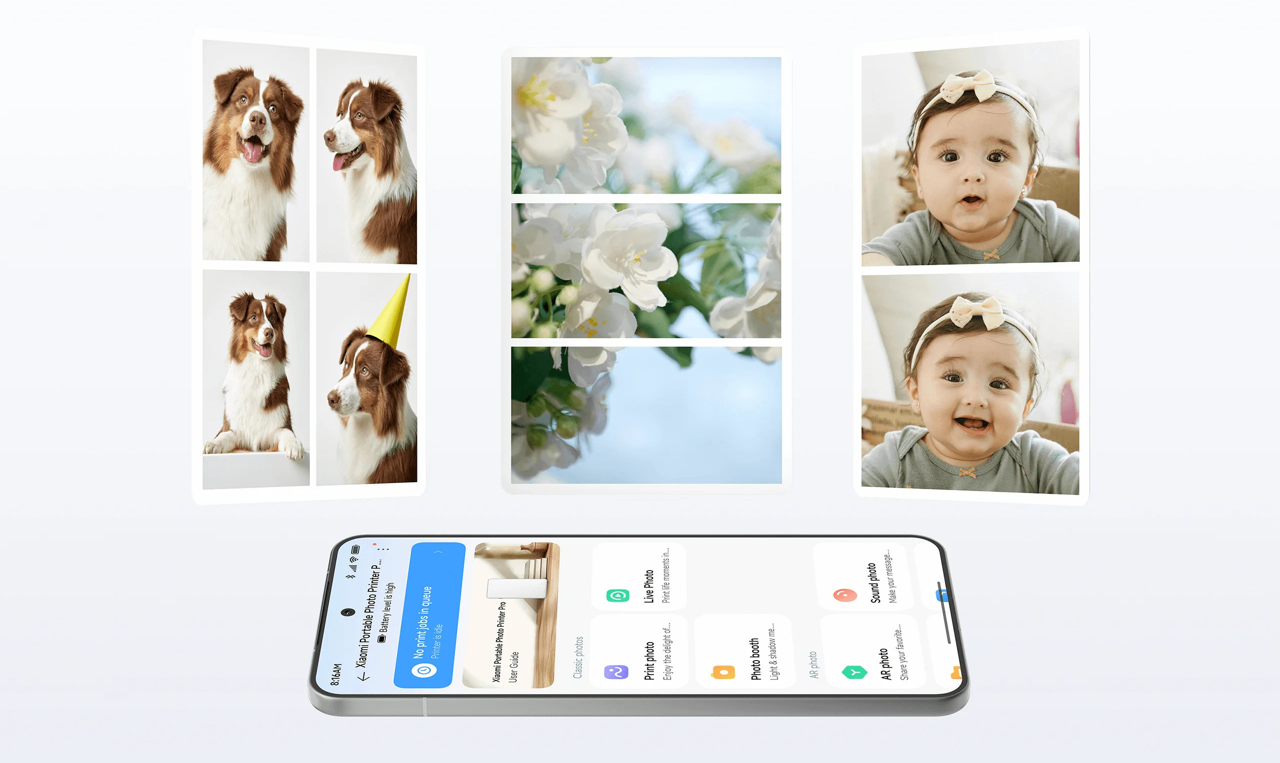 Můžete tisknout klasické statické nebo živé fotografie. Pomocà funkce „Scan“ (Skenovat) v pluginu tiskárny Xiaomi Home můžete sledovat, jak se vaše živé fotografie probouzà k životu.