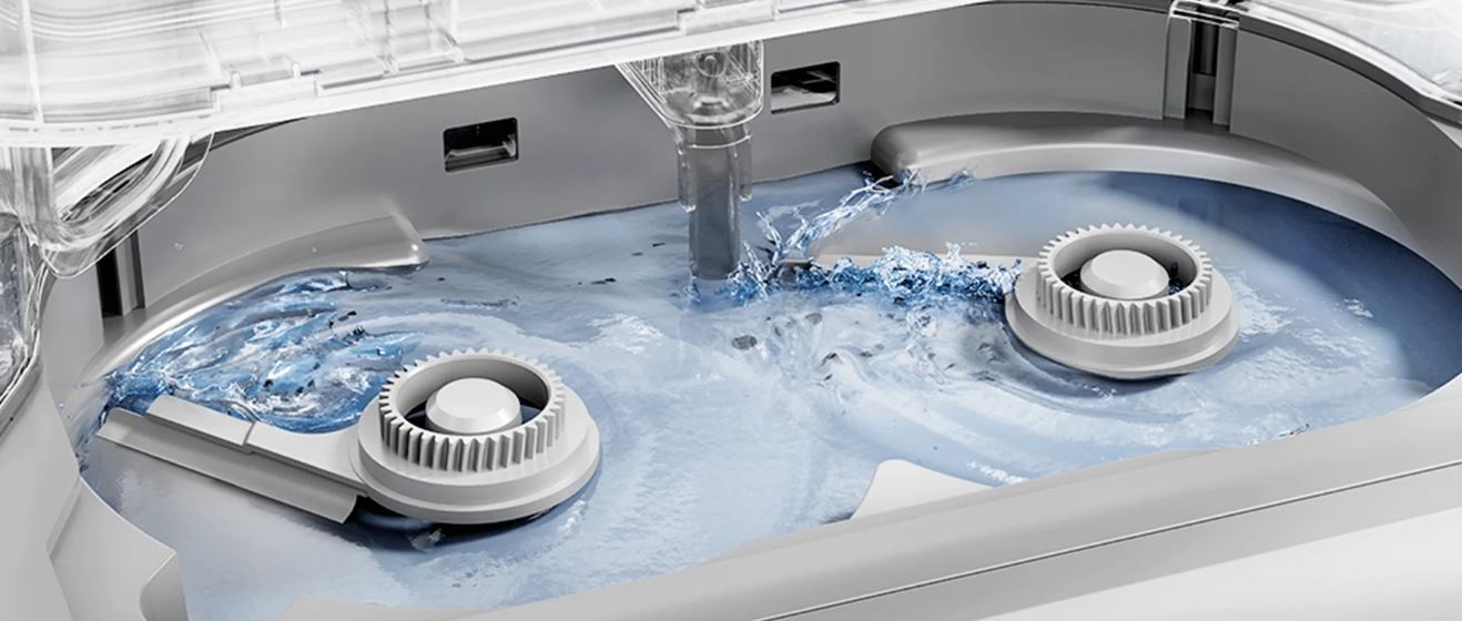 PĹ™i mytĂ horkou vodou pĹ™i teplotÄ› aĹľ 80 °C se z mopovacĂch podloĹľek rychle uvolĹujĂ odolnĂ© skvrny. V kombinaci s vysokorychlostnĂm rotaÄŤnĂm kartáčovánĂm je zaruÄŤeno účinnÄ›jšà čištÄ›nĂ mopu. Po vyÄŤištÄ›nĂ jsou mopovacĂ podloĹľky suchĂ© jiĹľ za 2 hodiny dĂky sušenĂ horkĂ˝m vzduchem, coĹľ sniĹľuje nutnost ruÄŤnĂho mytĂ nebo sušenĂ na slunci. Velká nádrĹľka na ÄŤistou vodu o objemu 4 l sniĹľuje potĹ™ebu ÄŤastĂ©ho doplĹovánĂ, proto je vysavaÄŤ ideálnĂ i pro Ăşklid velkĂ˝ch domácnostĂ.