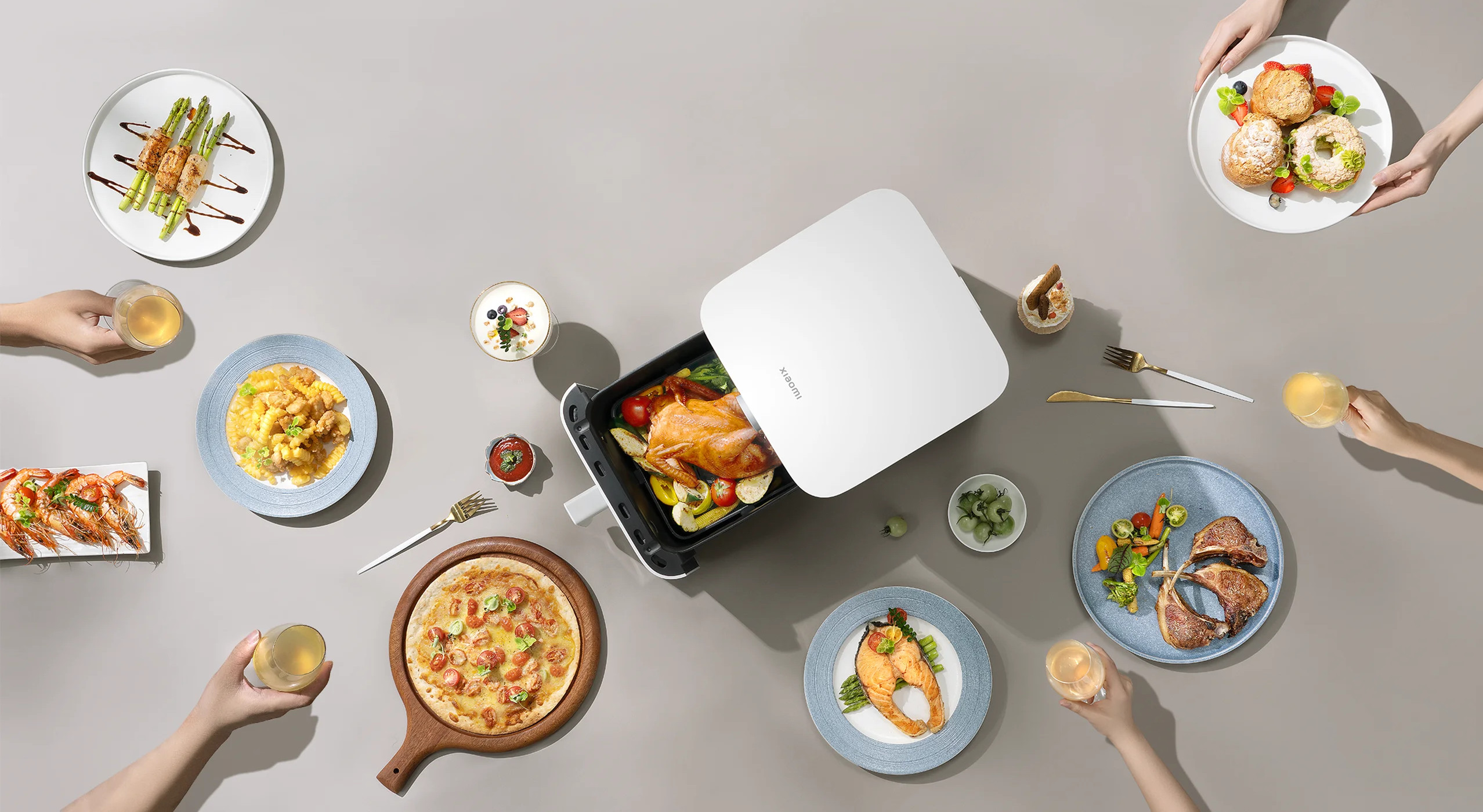 Horkovzdušná fritéza Xiaomi Smart Air Fryer o objemu 6,5 litru vám umožní připravit chutné křupavé pokrmy s minimem tuku. Díky velkému objemu je ideálním pomocníkem do vícečlenných domácností. 360° konvekční ohřev se postará o rovnoměrné vaření bez nutnosti obracení jídla.