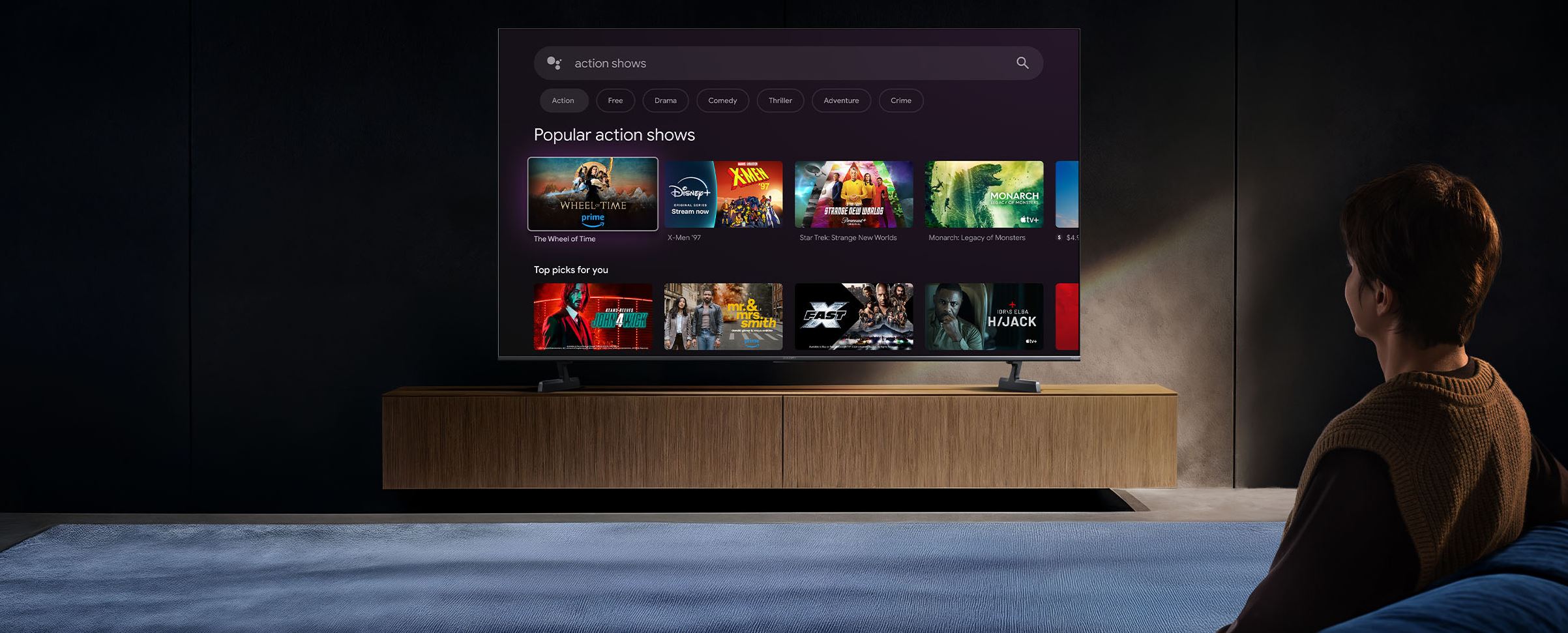 Služba Google TV™ přináší filmy, pořady a další obsah z různých aplikací a předplatných přímo pro vás. Hledáte něco nového? Využijte na míru šitá doporučení nebo vyhledávejte ve více než 10 000 aplikacích a stovkách bezplatných kanálů pomocí výkonného vyhledávače Google. Díky personalizovaným profilům se všichni mohou těšit na zážitek přizpůsobený přesně jejich přání.