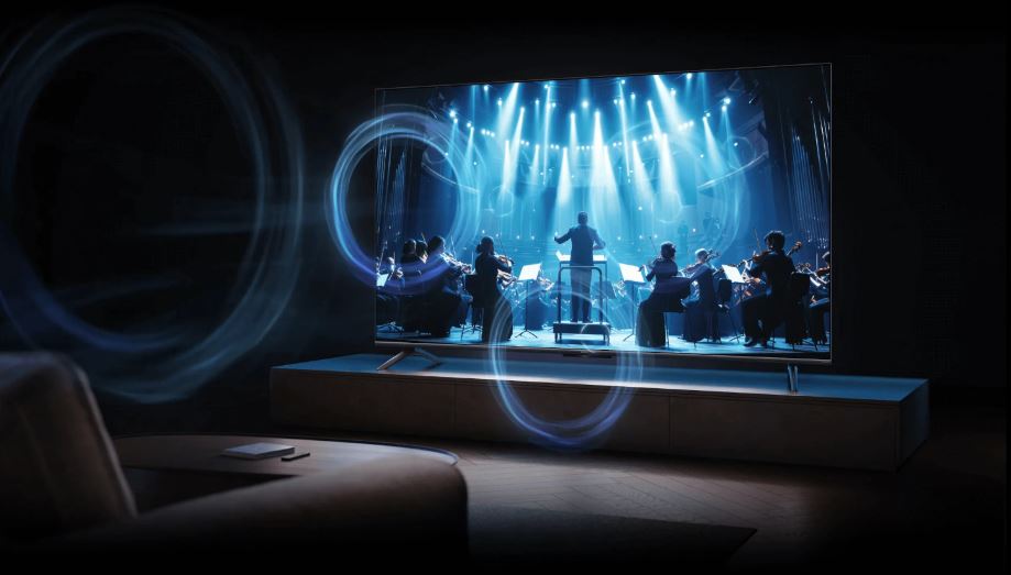Systém reproduktorů se 4 reproduktory poskytuje výkonný a pohlcující zvuk s výraznými výškami a hlubokými basy. Vychutnejte si bohatý zvukový zážitek, ať už posloucháte orchestrální hudbu nebo filmové soundtracky. Obsahuje režim Filmmaker Mode, který věrně reprodukuje záměry tvůrce. Ve spojení s Dolby Vision IQ®, Dolby Atmos® a IMAX Enhanced si vychutnejte pohlcující zážitek srovnatelný s divadlem přímo v pohodlí vašeho obývacího pokoje.