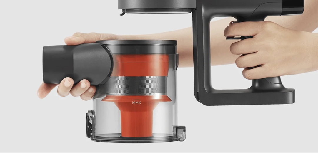 Obsahuje 600ml extra velkou prachovou přihrádku, která snižuje potřebu vyprazdňování během čištění. Prachová přihrádka se také může pochlubit odpojením jedním tlačítkem pro snadné čištění.