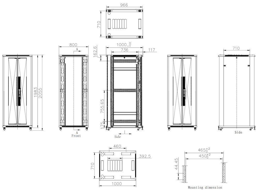 XtendLan 19" stojanový rozvaděč 42U - rozložený