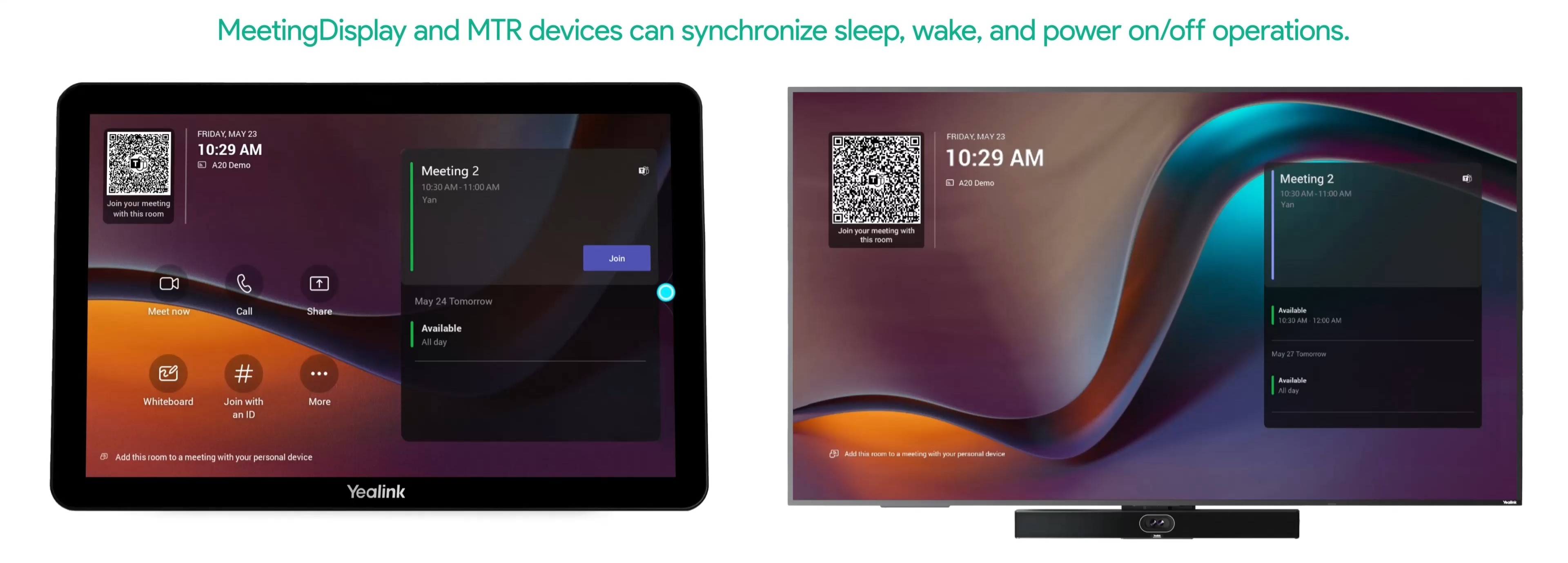 IntegrovanĂ© Ĺ™ešenĂ Yealink MeetingDisplay podporuje automatickĂ© pĹ™epnutĂ na aktuálnĂ vstupnĂ zdroj bez ohledu na to, kterĂ˝ zdroj právÄ› pouĹľĂváte. KdyĹľ pĹ™ijde hovor z aplikace Teams, automaticky se pĹ™epne na Teams. Podporuje takĂ© funkce uspánĂ a probuzenĂ.