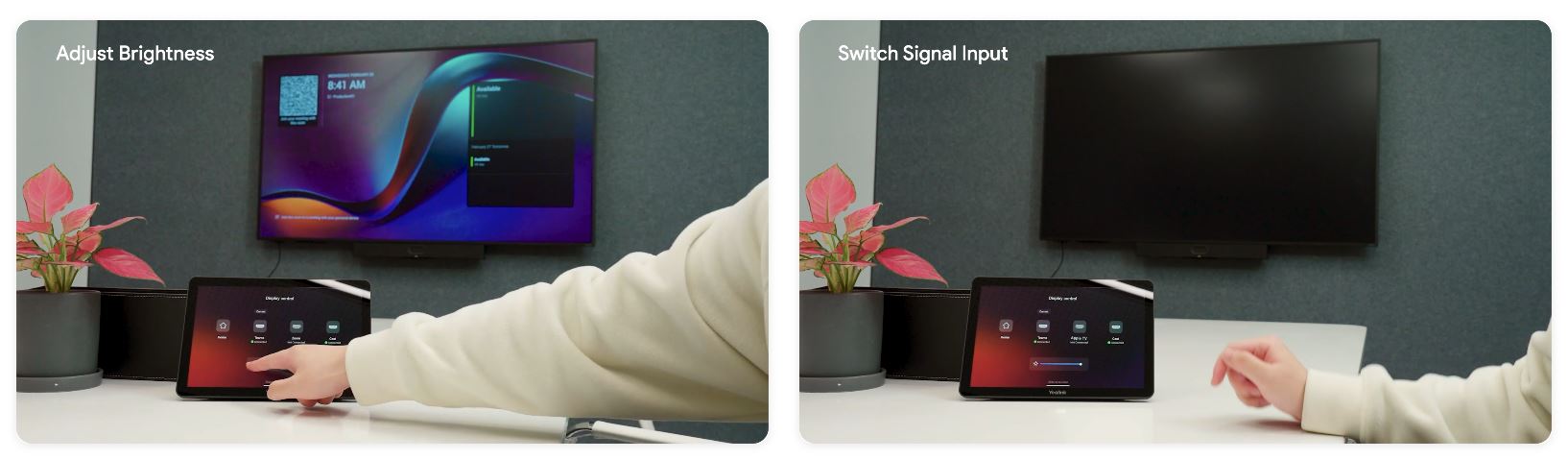 StaÄŤĂ jedna konzole One Touch. Snadno nakonfigurujte zaĹ™ĂzenĂ MTR a MeetingDisplay bez dálkovĂ©ho ovladaÄŤe k televizoru. Bez námahy pĹ™epĂnejte vstupy signálu a upravujte jas, kontrast, hlasitost atd. MeetingDisplay.