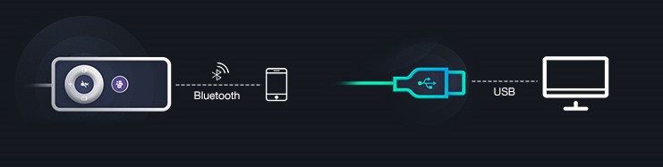 Podporovaný režim duálního připojení USB-A a Bluetooth, bezdrátový dosah Bluetooth může být až 10 m. Uživatelé mohou připojit a spravovat dva druhy hovorových zařízení současně a bezproblémově přepínat mezi PC a mobilním zařízením a zlepší efektivitu zpracování hovorů.