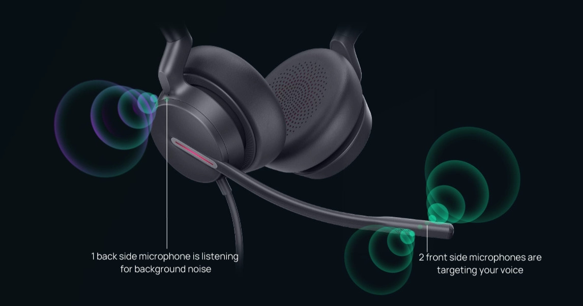 Technologie potlačení hluku se třemi mikrofony a akustickým štítem dokáže inteligentně odstínit hluk z okolí a pouze zachytit hlas mluvčího. Pomáhá zlepšit čistotu a kvalitu hovoru a přináší dokonalý zážitek z hovoru.