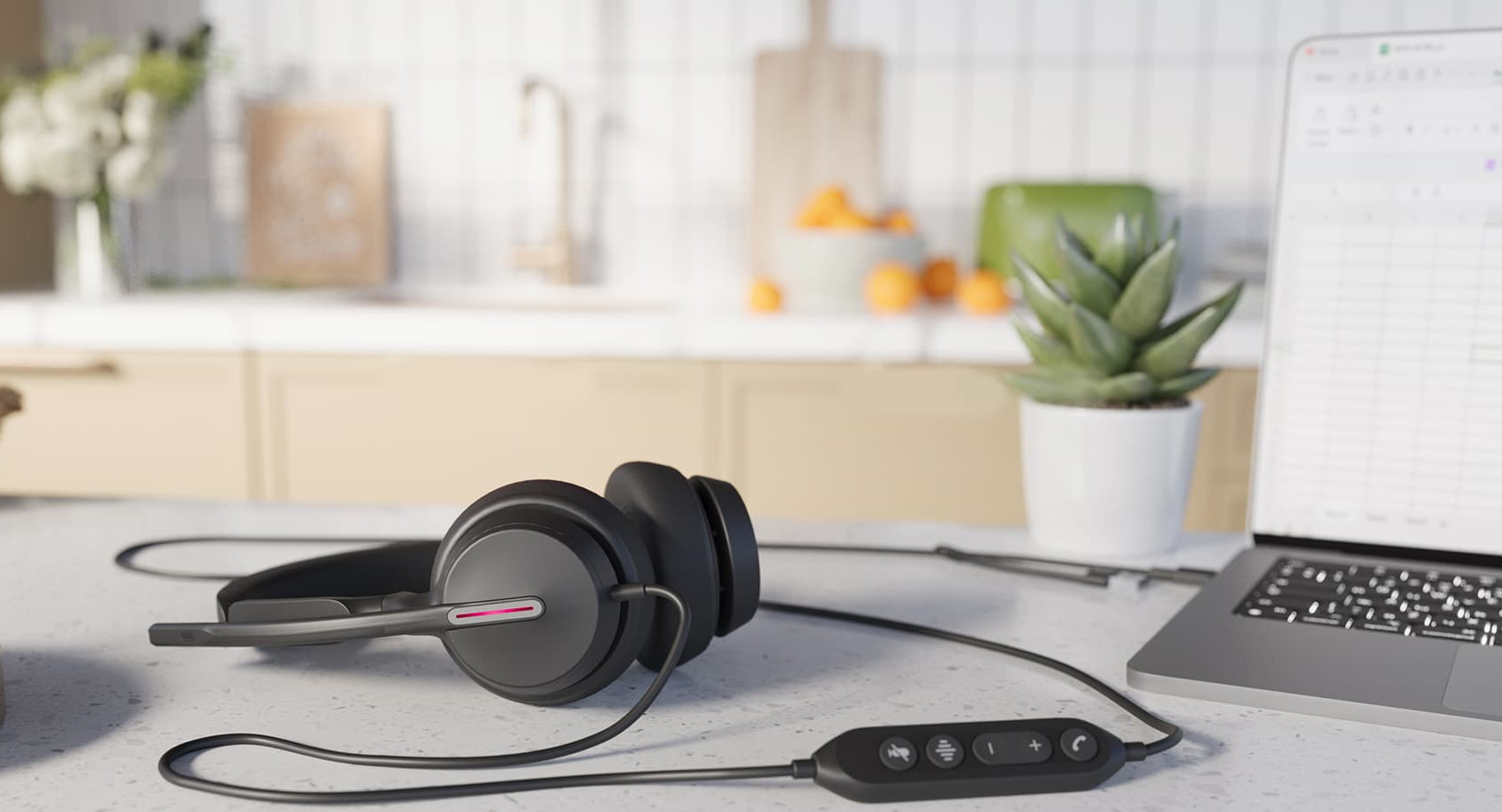 Stačí použít kabel USB-C s adaptérem USB-A pro flexibilní připojení k vašim zařízením. Integrované ovládací prvky pro snadné řízení hovorů, hlasitosti a ztlumení v kombinaci s odolným kabelem zajišťují plynulou komunikaci.