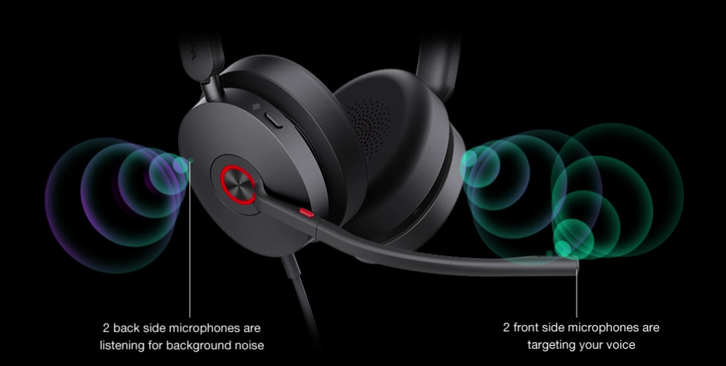 Čtyři mikrofony s potlačením okolního hluku a náušníky eliminují okolní hluk a pomáhají uživatelům soustředit se na svou práci. Navíc náhlavní souprava nabízí dvě úrovně hloubky ANC, což uživatelům umožňuje rychle přepínat stisknutím tlačítka ANC podle prostředí a osobních potřeb, což poskytuje pohlcující pracovní zážitek.