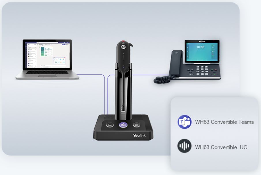 Už nejsou potřeba žádné adaptéry EHS, připojte stolní telefon přímo pomocí jednoho kabelu USB. A 2 Micro USB porty obsažené v základně, podporující současné připojení k PC a IP telefonu. Propracovaná integrace s Yealink IP telefony Vám dává v okamžiku nošení WH63 pocítit zážitek z krystalicky čistého hovoru. Je kompaktibilní s populárními UC platformami a dosahujte všestranné spolupráce.