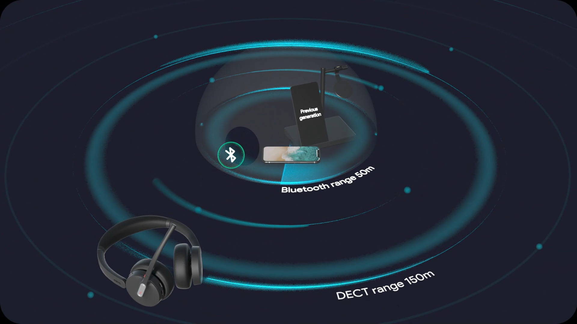 Technologie Bluetooth integrovaná do náhlavní soupravy DECT zachovává výhody technologie DECT a zároveň překonává omezení mobility.