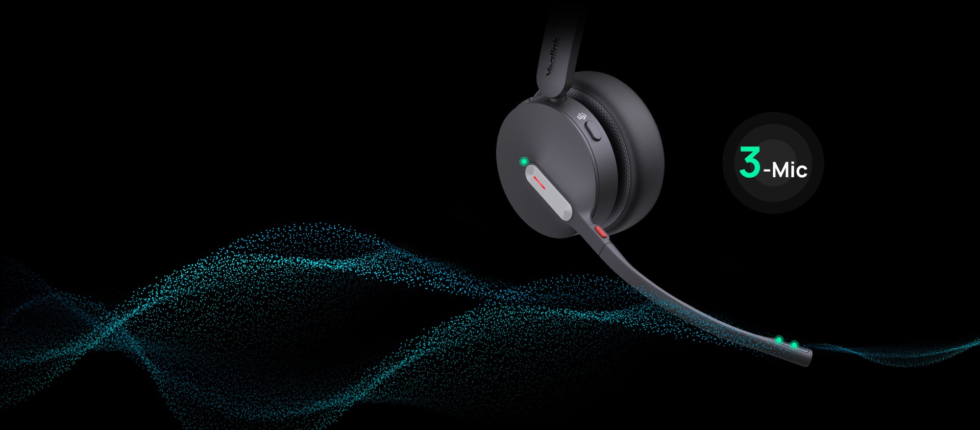 WH64 představuje technologii akustického štítu Yealink 2.0, která využívá tři vestavěné mikrofony k automatickému blokování hluku na pozadí a zajištění čisté komunikace. Tato pokročilá funkce eliminuje rušení z různých zdrojů a umožňuje efektivní komunikaci v rušných kancelářích nebo hlučném otevřeném pracovním prostředí.