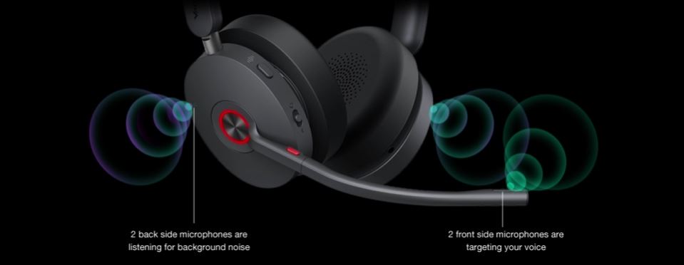 WH68 Hybrid využívá technologii Yealink Acoustic Shield 3.0, která pomocí čtyř vestavěných mikrofonů blokuje hluk v pozadí a automaticky zajišťuje jasnou komunikaci.