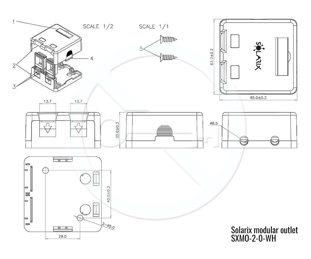 Zásuvka modulární Solarix pro 2 keystony na omítku bílá SXMO-2-0-WH